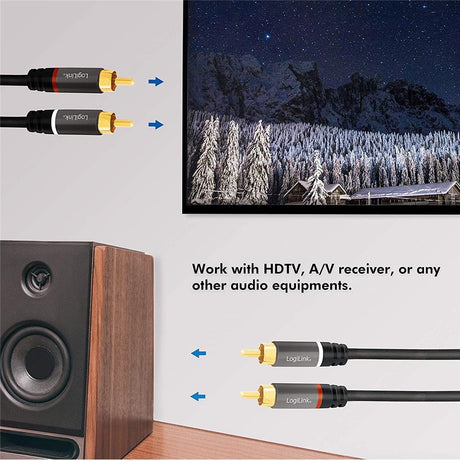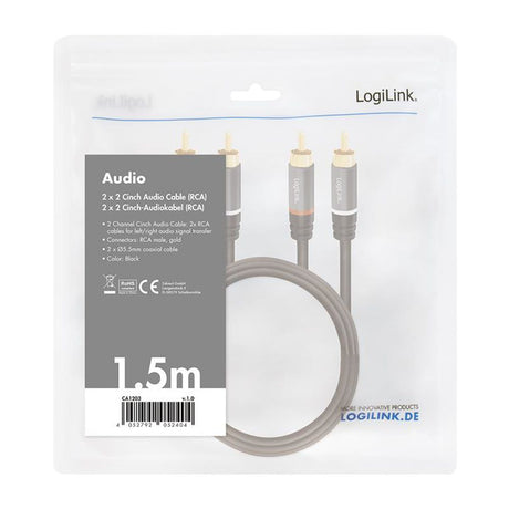 LogiLink Audio-Kabel 2x Cinch/male zu 2x Cinch/Stecker vergoldete Kontakte schwarz 1,5 m