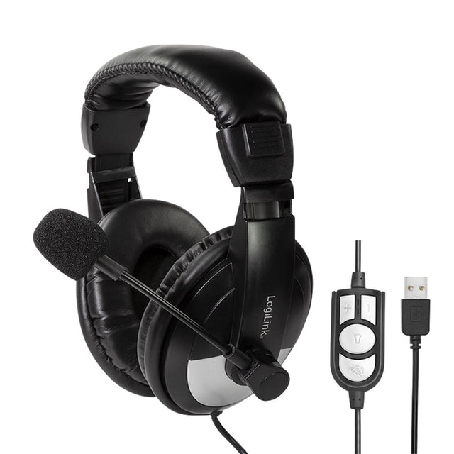 LogiLink Stereo-Headset, 1x USB-A-Stecker, Bügelmikrofon, Schwarz