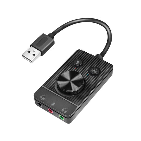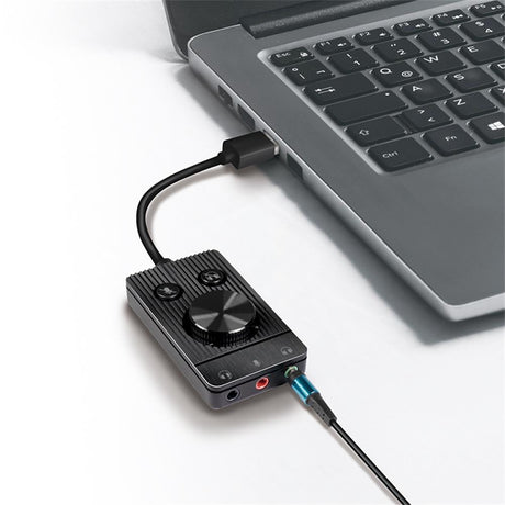 LogiLink USB 2.0-Audio-Adapter mit Lautstärkeregler, 3x 3,5 mm/F, schwarz