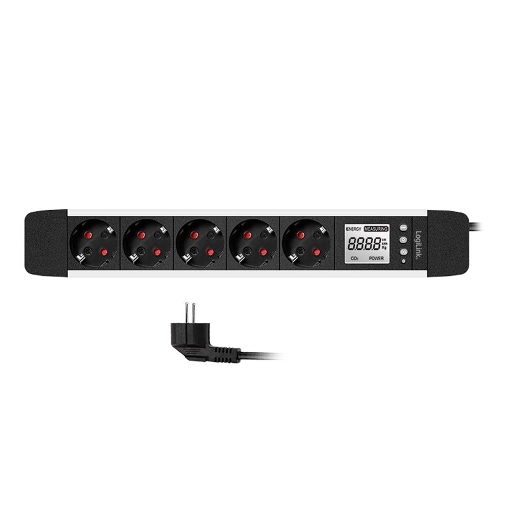 LogiLink 5-fach Steckdosenleiste mit LCD-Display für Energieverbrauch & CO₂-Emission