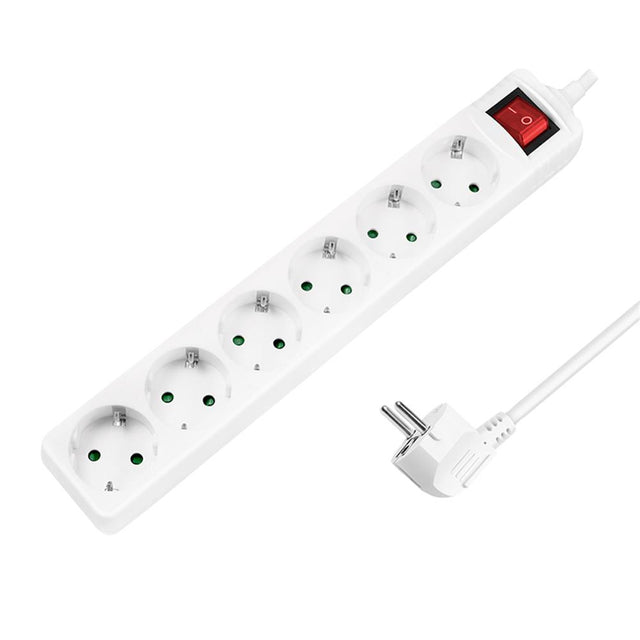 Steckdosenleiste mit 6 Schutzkontaktbuchsen von LogiLink. Beleuchteter Ein- und Ausschalter. Buchsen mit Kindersicherung. Kabellänge 1,5m.