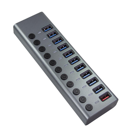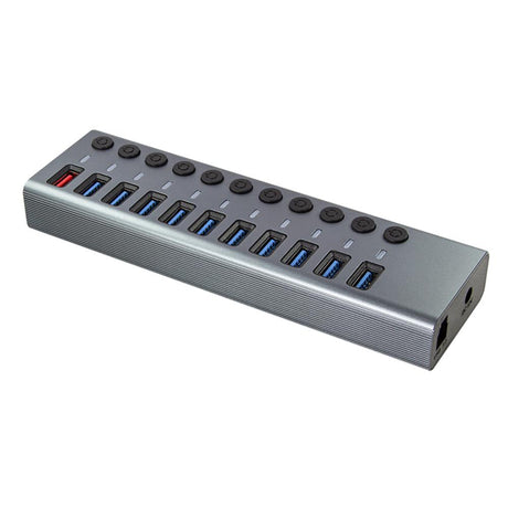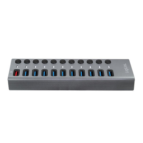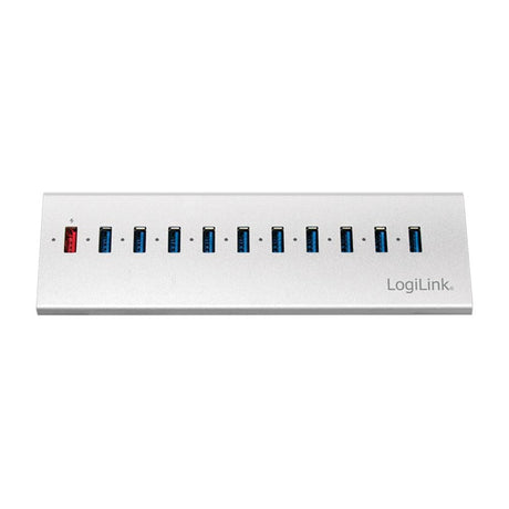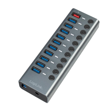 LogiLink USB 3.2 Gen 1 Hub, 10 Ports + 1x Schnell-Ladeport, Ein/Aus-Schalter