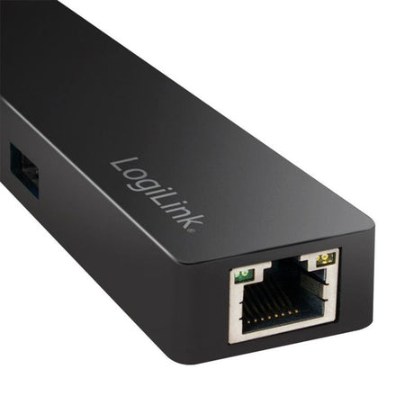 LogiLink USB 3.2 Gen 1x1 USB-C 3-Port Hub mit Gigabit Adapter Schwarz