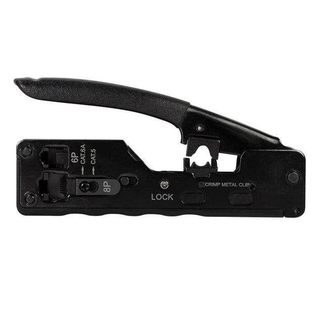 Diese professionelle Crimpzange von LogiLink eignet sich speziell für geschirmte CAT.6A (CAT.7) Stecker mit Zugentlastungsclip, aber auch für alle anderen herkömmlichen CAT.5e, CAT.6 und RJ11/12 Modularstecker. Diese handliche und trotzdem sehr stabile Zange liegt super in der Hand und ermöglicht somit ein schnelles und präzises Arbeiten.
