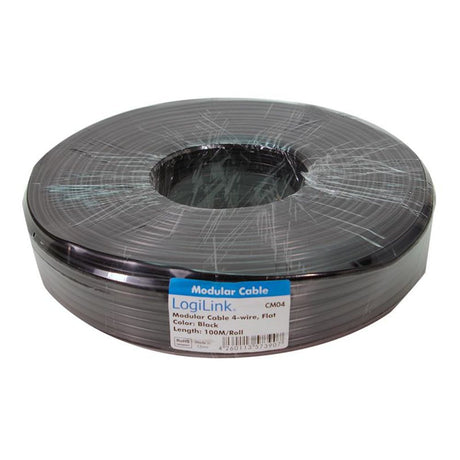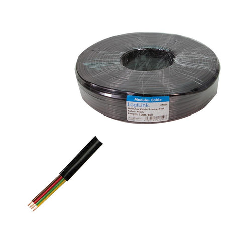 LogiLink Telefonkabel flach 4-Adrig 100 m schwarz