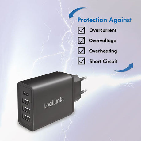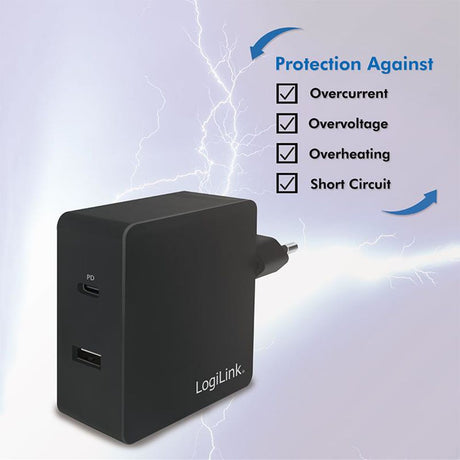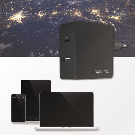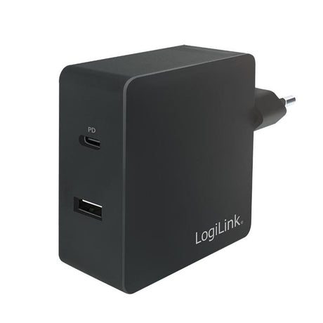 LogiLink Steckdosenadapter Dual-USB mit USB-C (PD) und USB-A, 65W, Schwarz