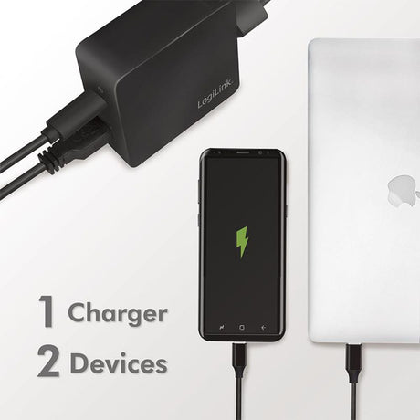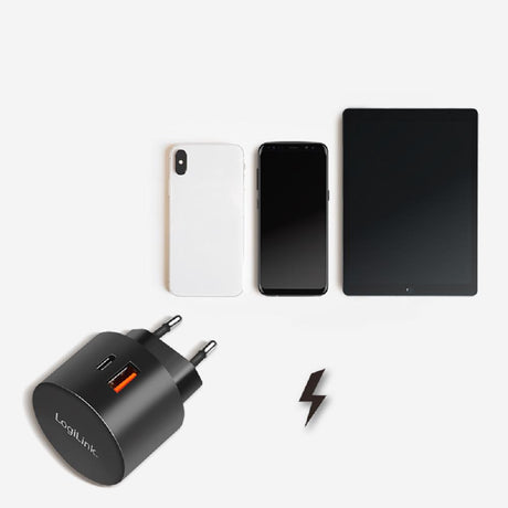 LogiLink Steckdosenadapter Dual-USB mit USB-C PD und USB-A QC 3.0, 20W, Schwarz