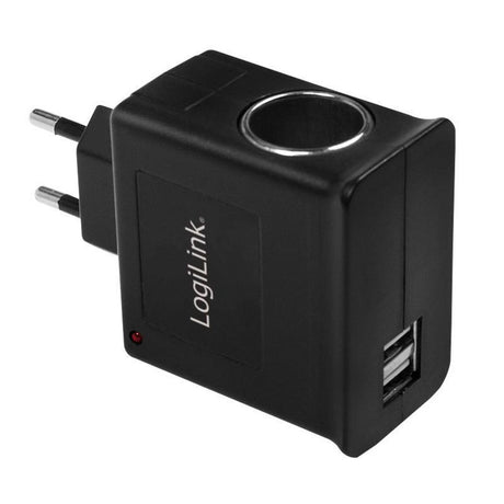 LogiLink Steckdosenadapter mit 2x USB-Ports und Zigarettenanzünderbuchse, 12W
