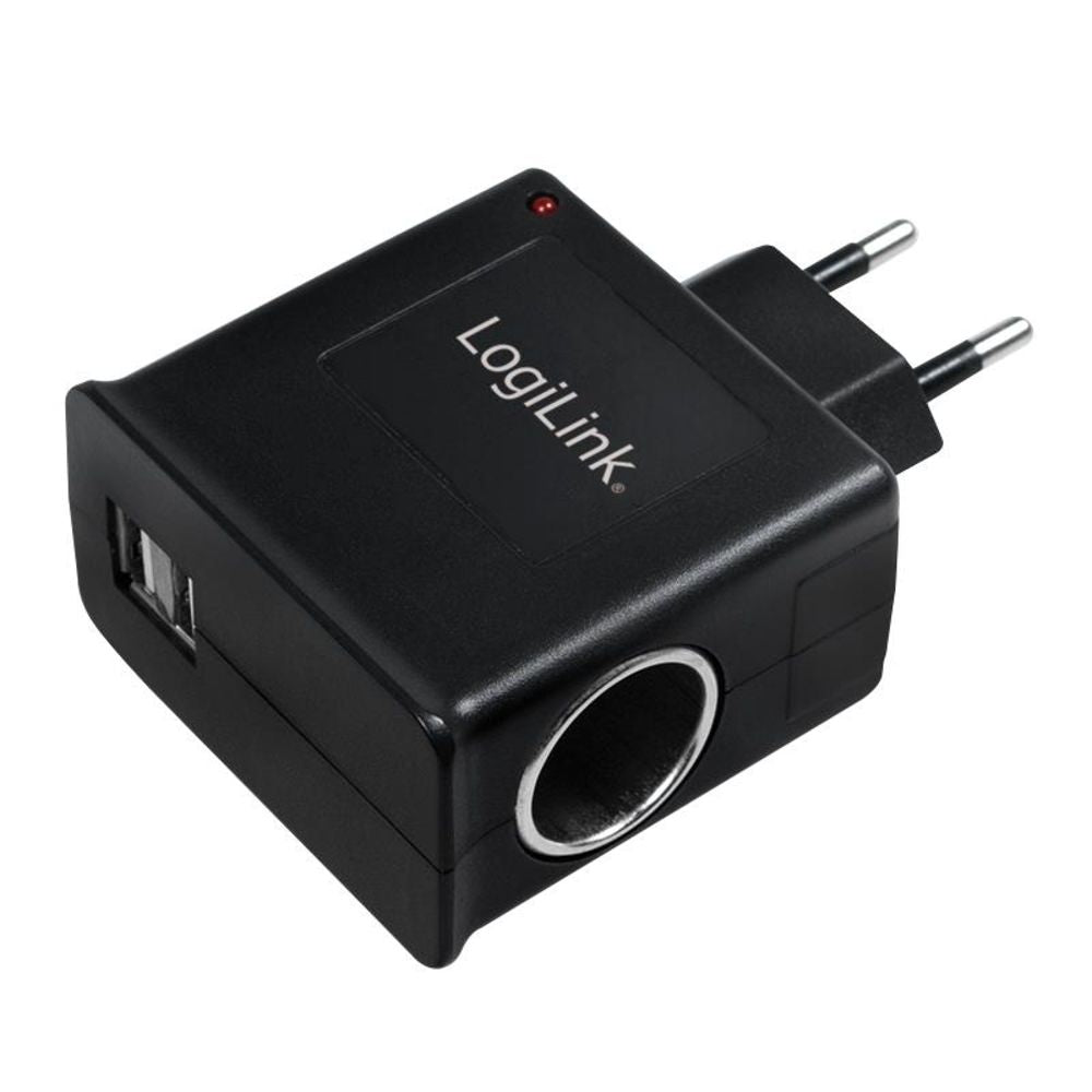 LogiLink Steckdosenadapter mit 2x USB-Ports und Zigarettenanzünderbuchse, 12W