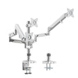 Befestigen Sie Ihre drei TV- und Computer-Monitore direkt am Schreibtisch. So können Sie auch dort Ihre Bildschirme mit voller Bewegungsfreiheit nutzen und sie nach Belieben neigen, schwenken oder drehen. Außerdem haben Sie die Möglichkeit den Arm in der Höhe zu verstellen, um Ihnen eine neue Dimension des visuellen Komforts zu ermöglichen. Die LogiLink Halterung eignet sich für drei flache als auch für curved Monitore.