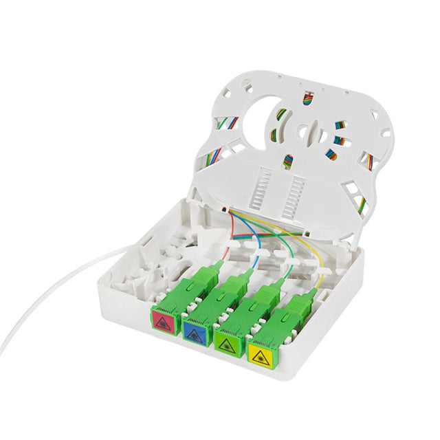 - Weiße ABS/PC-Aufputzdose mit schwenkbarer Spleißkasette
