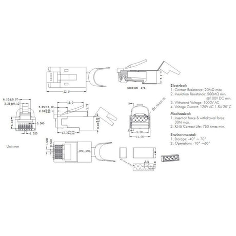 LogiLink RJ45-Modularstecker, Cat.8.1/Cat.6A, geschirmt, 50 Stück