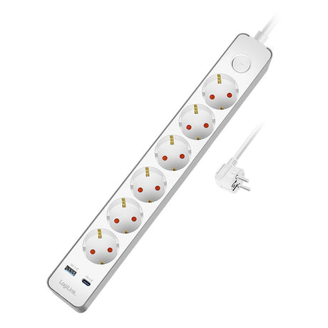 Normaler Preis 14,12 €Grundpreis /Nicht verfügbarLogiLink Steckdosenleiste 6-fach mit USB-A & USB-C Schnellladefunktion, 1,4 m, Weiß