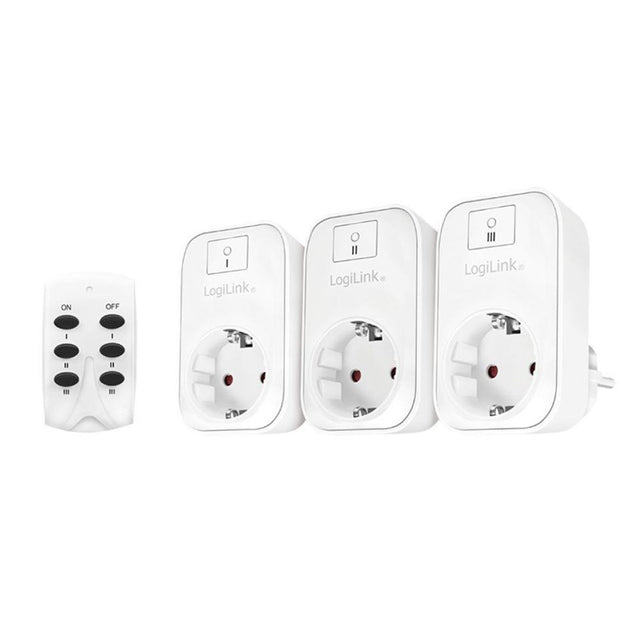 LogiLink EC0007 Steckdosenset mit Fernbedienung, 3x CEE 7/3 für Innenbereich