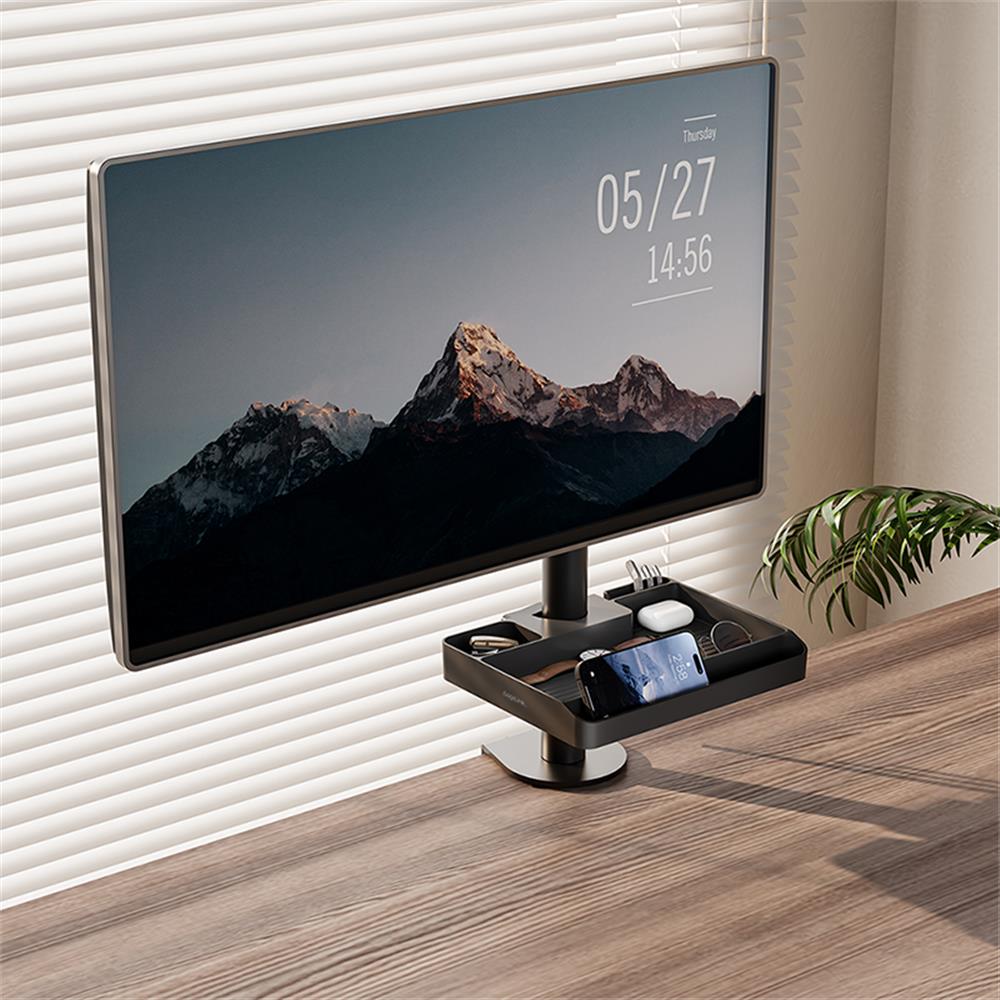 • Platzsparender Organizer für Monitor- und TV-Ständer