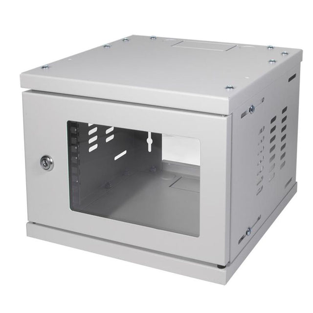 LogiLink 10" SOHO Wandschrank Stahl 4HE vormontiert Glasfenster abschließbar in Lichtgrau