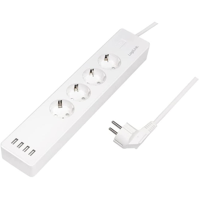 LogiLink Smart Home Wi-Fi Smart Steckdosenleiste 4-fach mit 4x USB-A, Tuya kompatibel