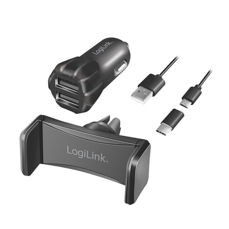 Normaler Preis 5,79 €Grundpreis /Nicht verfügbar LogiLink USB Doppel Kfz Ladegerät + Smartphone Halterung im Set