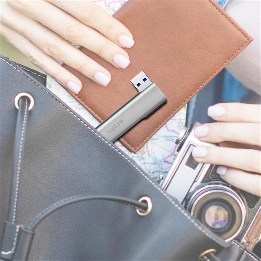 LogiLink Ultraslim 4-Port USB-A Hub, Aluminium, Silber